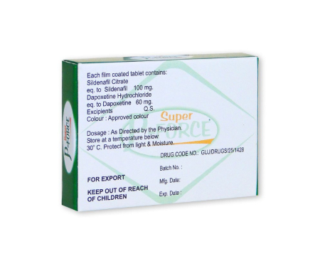Složení léku je jedinečné v tom smyslu, že obsahuje dvě různé účinné látky namísto jedné, které působí paralelně. Vzhledem k nové kombinaci Sildenafilu/Dapoxetinu (100 mg/60 mg) je přípravek Super P Force řazen do samostatné skupiny léků.